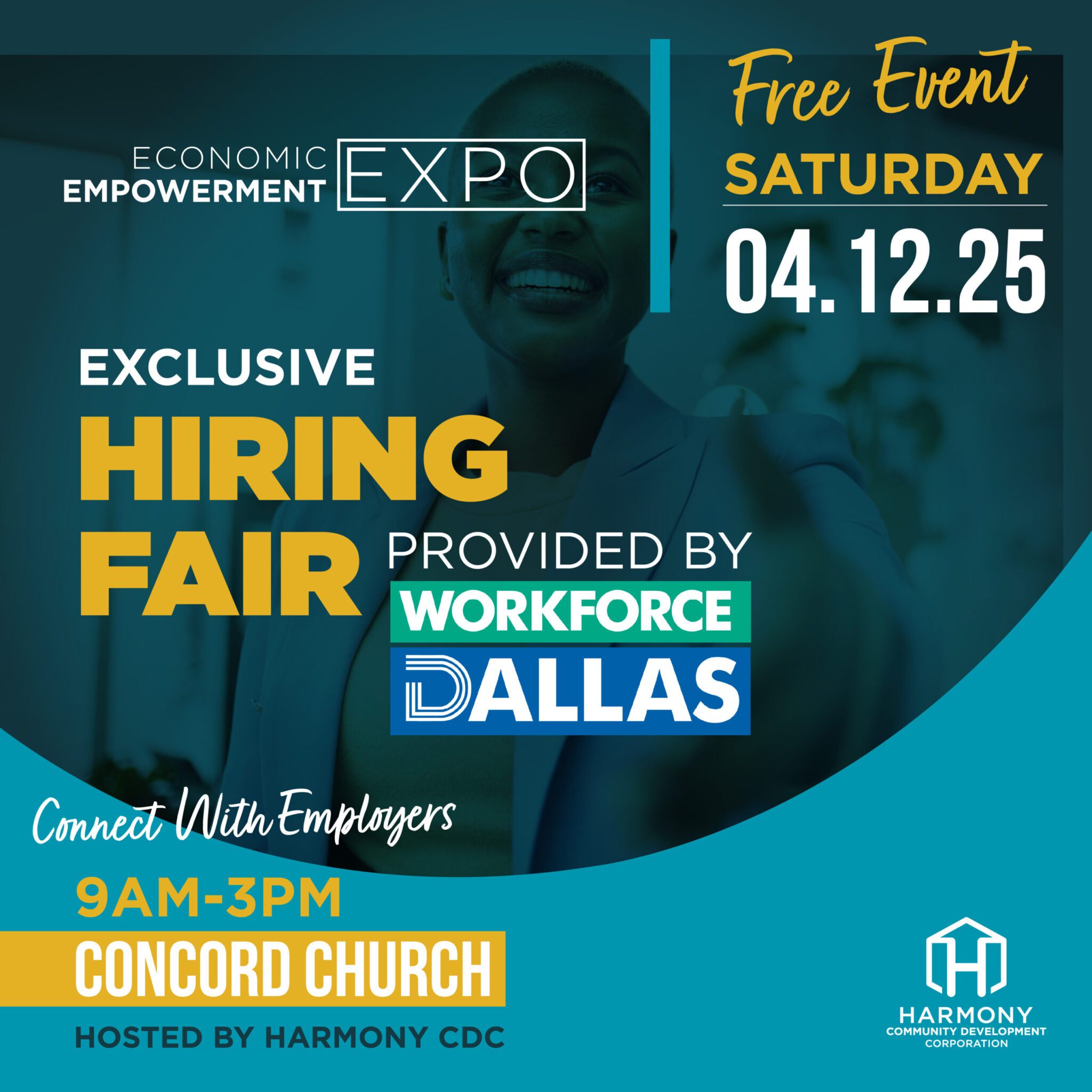 Visit Concord Church in Dallas on April 12th from 9:00 a.m. to 3:00 p.m. for an exciting hiring event!