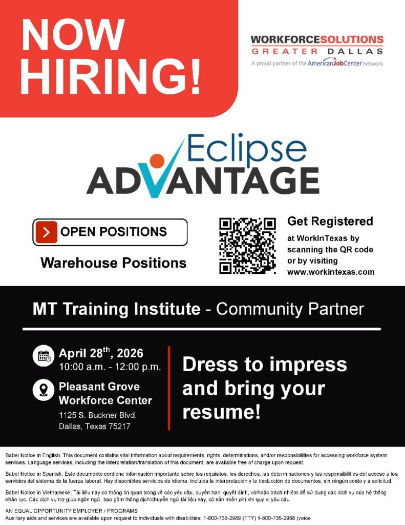 Attend the Desoto Works! in person job fair on Wednesday, May 28th from 10:00 a.m. to 2:00 p.m. More than 400 ready and able job seekers are ready to work!