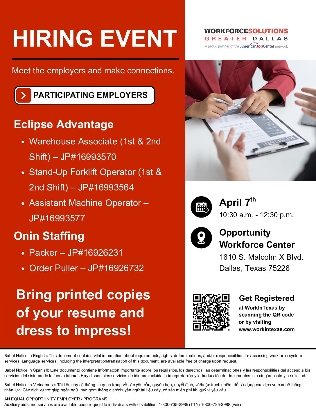 Join us Wednesday, April 1 at the Redbird workforce center for the Eclipse Advantage job fair!