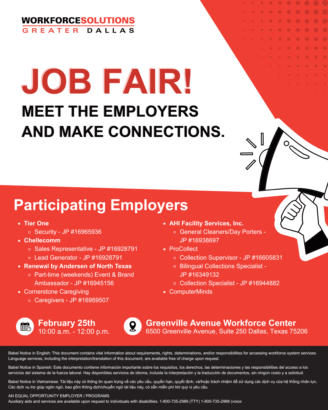 Participating Employers: Coca Cola Dept. Public Safety RJW Logistics Allied Universal Building Talent Foundation AUX Rideshare Parkland Hospital Stratas Foods LLC Eclipse .... |