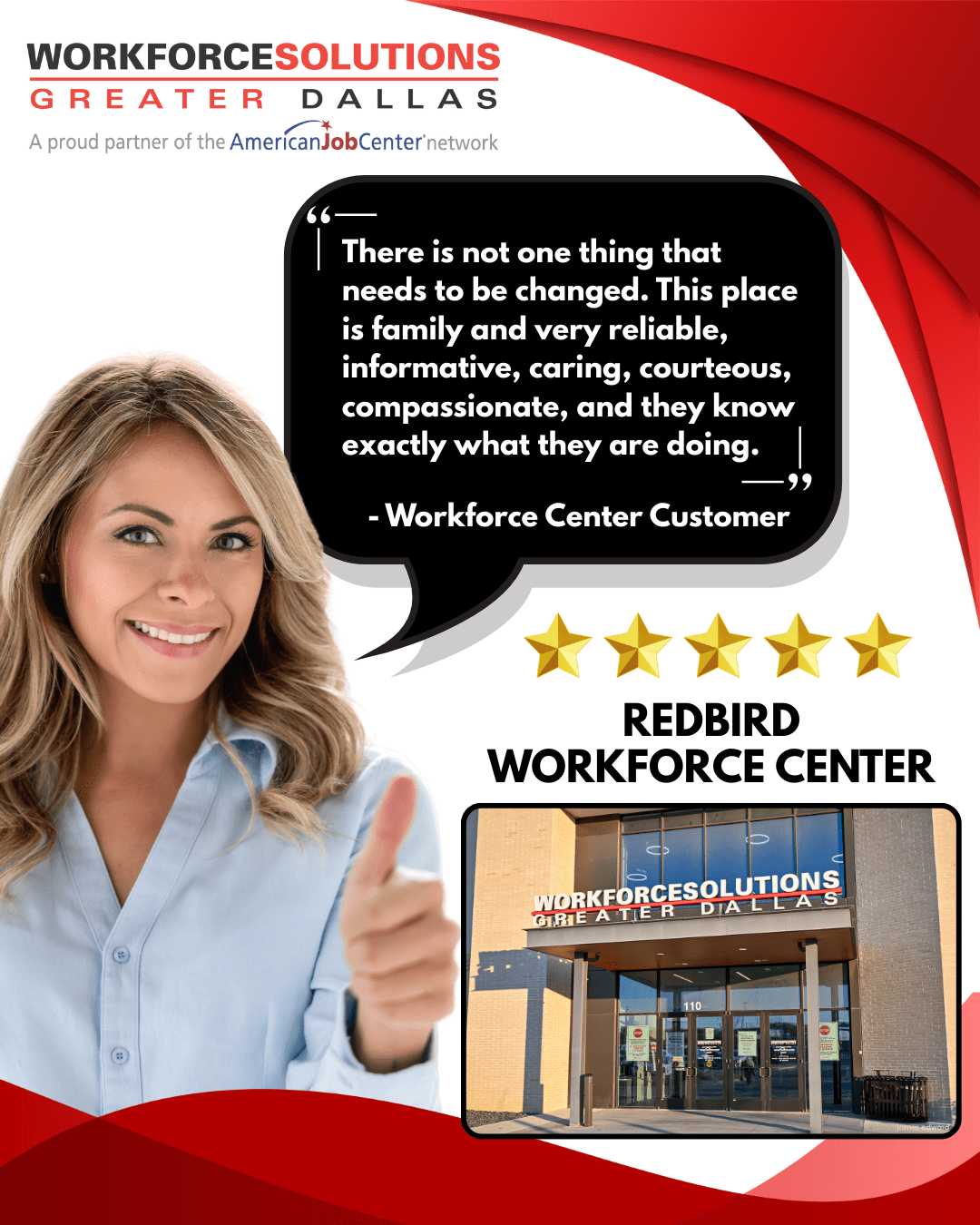 Explore our customer testimonials to see how Workforce Solutions Greater Dallas is making a difference in the lives of individuals and businesses throughout our region. These stories are a powerful reminder of our mission and the positive change we create every day.